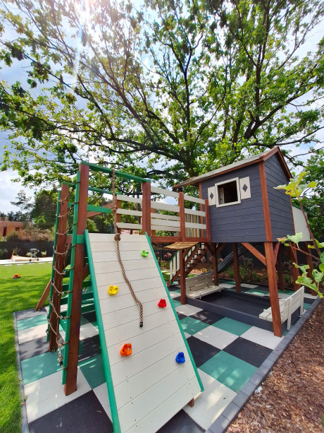 Uroczy domek w stonowanych, ciekawych kolorach doskonale komponujących się z otoczeniem. Dzięki harmonijnej kolorystyce prezentuje się niezwykle naturalnie i przyjemnie dla oka. Jednym słowem – wygląda jak z bajki!