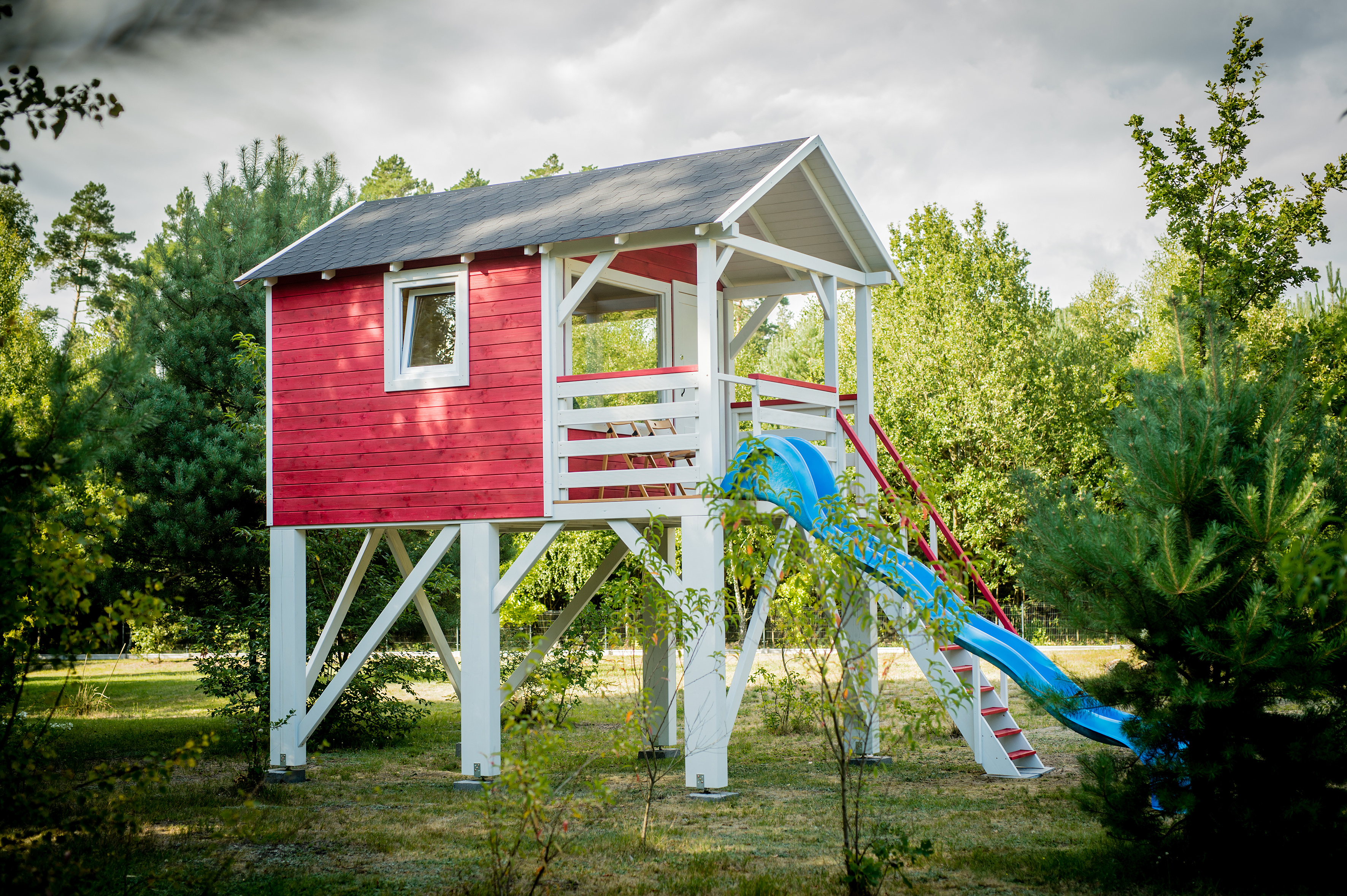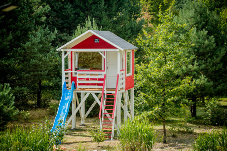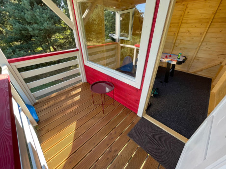 Nasz domek na wzgórzu to przestrzeń, w której odpoczynek spotyka się z nutą przygody. Uniesiony 2 metry nad ziemią, daje wrażenie lekkości i oderwania od codzienności – zupełnie jak prawdziwy domek na drzewie.
